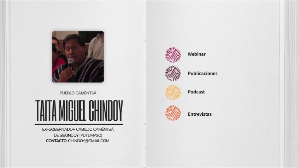 Ex–gobernador Cabildo Camëntsá de Sibundoy (PUTUMAYO) CONTACTO: chindoy@gmail.com