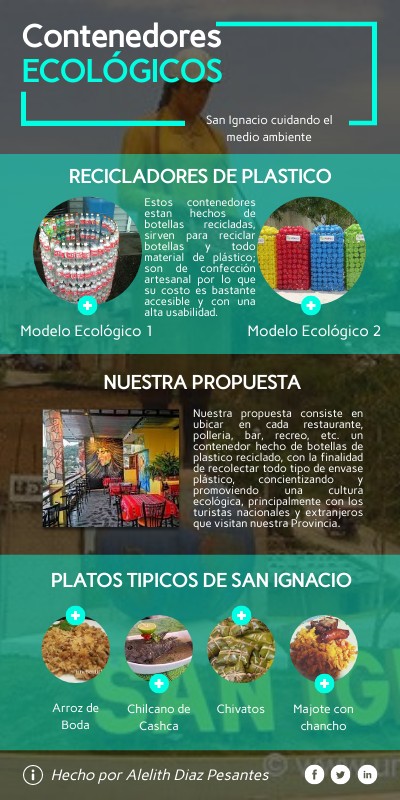 Nuestra propuesta consiste en ubicar en cada restaurante, polleria, bar, recreo, etc. un contenedor hecho de botellas de plastico reciclado, con la finalidad de recolectar todo tipo de envase plástico, concientizando y promoviendo una cultura ecológica, principalmente con los turistas nacionales y extranjeros que visitan nuestra Provincia.