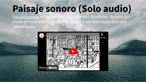 Paisaje sonoro es todo lo que escuchamos alrededor. Reconoce y anota en tu cuaderno todos los ruidos y sonidos musicales que identifiques.