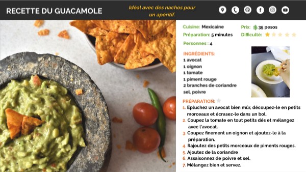 PRÉPARATION:1. Epluchez un avocat bien mûr, découpez-le en petits morceaux et écrasez-le dans un bol. 2. Coupez la tomate en tout petits dés et mélangez avec l'avocat. 3. Coupez finement un oignon et ajoutez-le à la préparation. 4. Rajoutez des petits morceaux de piments rouges. 5. Ajoutez de la coriandre 6. Assaisonnez de poivre et sel. 7. Mélangez bien et servez.