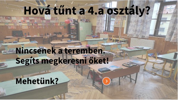 Nincsenek a teremben. Segíts megkeresni őket! Mehetünk?