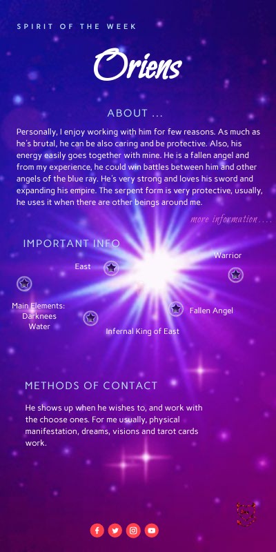 Personally, I enjoy working with him for few reasons. As much as he's brutal, he can be also caring and be protective. Also, his energy easily goes together with mine. He is a fallen angel and from my experience, he could win battles between him and other angels of the blue ray. He's very strong and loves his sword and expanding his empire. The serpent form is very protective, usually, he uses it when there are other beings around me.