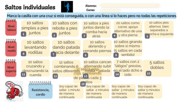 Marca la casilla con una cruz si está conseguida,. La cuerda nunca puede parar.