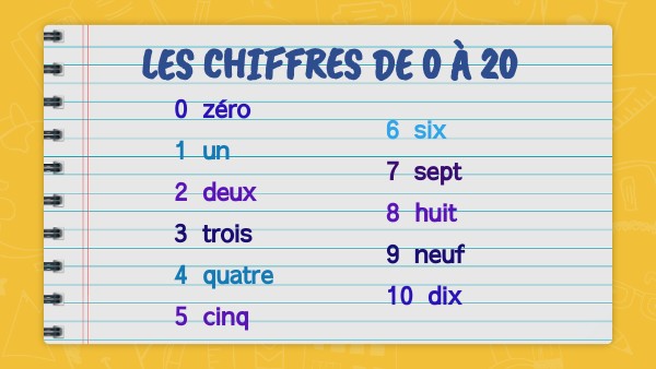 0 zéro 1 un 2 deux 3 trois 4 quatre 5 cinq