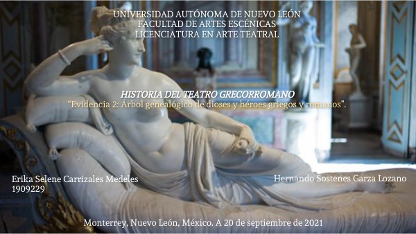 UNIVERSIDAD AUTÓNOMA DE NUEVO LEÓN FACULTAD DE ARTES ESCÉNICAS LICENCIATURA EN ARTE TEATRAL HISTORIA DEL TEATRO GRECORROMANO “Evidencia 2: Árbol genealógico de dioses y héroes griegos y romanos”.