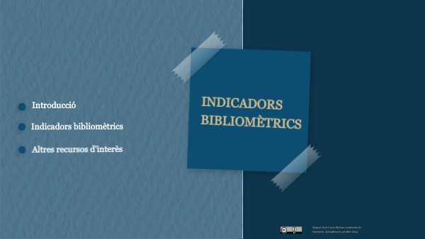 Amb tot això ampliareu el vostre coneixement sobre els diferents indicadors bibliomètrics i les publicacions amb impacte indexades en prestigioses base de dades