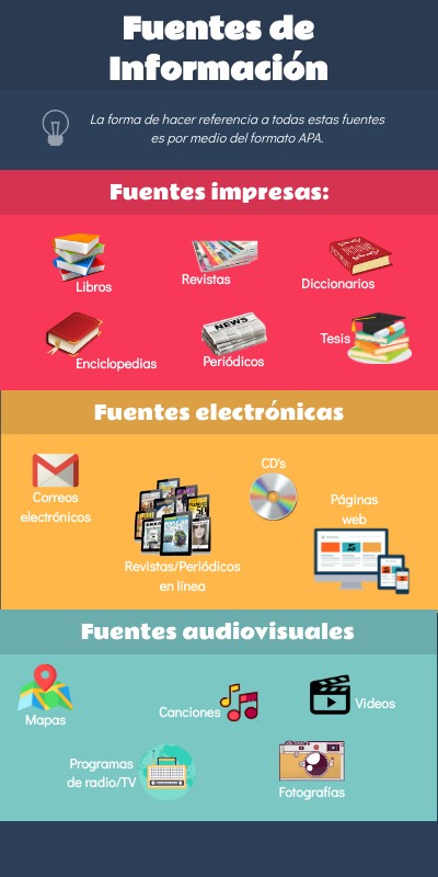 La forma de hacer referencia a todas estas fuentes es por medio del formato APA.