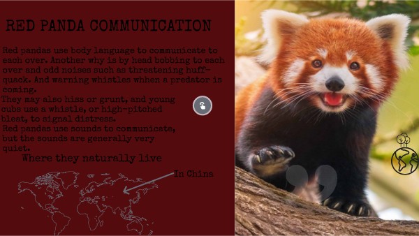 Red pandas use body language to communicate to each over. Another why is by head bobbing to each over and odd noises such as threatening huff-quack. And warning whistles whhen a predator is coming.