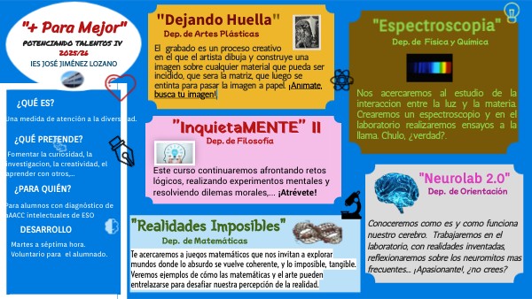 Conoceremos cómo es y cómo funciona nuestro cerebro. Trabajaremos en el laboratorio, con realidades inventadas, reflexionaremos sobre los neuromitos más frecuentes.... ¡Apasionante!, ¿no crees?