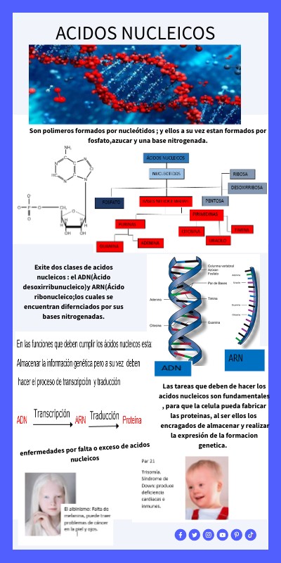 Son polimeros formados por nucleótidos ; y ellos a su vez estan formados por fosfato,azucar y una base nitrogenada.