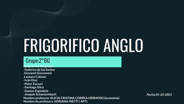 Integrantes del grupo: -Federico de los Santos .Giovanni Giacomoni .Lautaro Colman -Iván Díaz -Peter Zarsuri -Santiago Silva -Gaston Espindola -Joaquin Schanzembach Nombre profesora: ALICIA CRISTINA CORREA HERMOSO (economia) Nombre de profesora: ADRIANA INETTI ( APT)