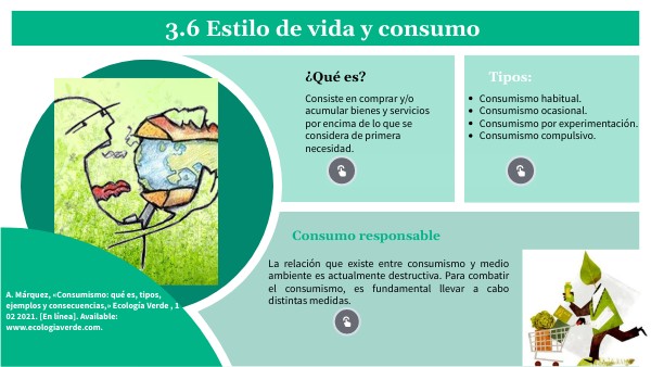 A. Márquez, «Consumismo: qué es, tipos, ejemplos y consecuencias,» Ecología Verde , 1 02 2021. [En línea]. Available: www.ecologiaverde.com.