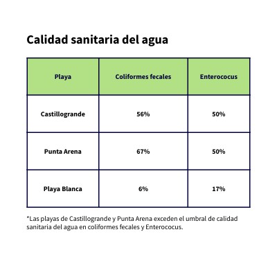 *Las playas de Castillogrande y Punta Arena exceden el umbral de calidad sanitaria del agua en coliformes fecales y Enterococus.