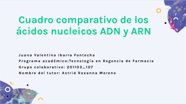 Juana Valentina Ibarra Fontecha Programa académico:Tecnología en Regencia de Farmacia Grupo colaborativo: 201103_107 Nombre del tutor: Astrid Roxanna Moreno