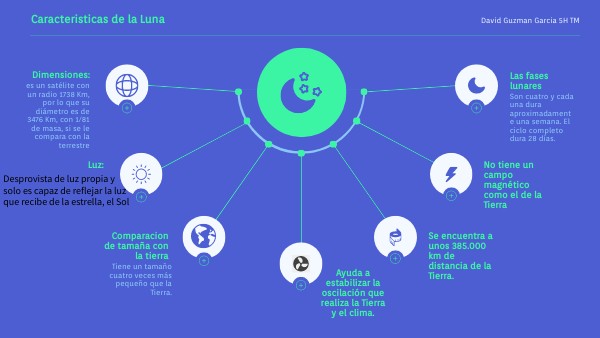 es un satélite con un radio 1738 Km, por lo que su diámetro es de 3476 Km, con 1/81 de masa, si se le compara con la terrestre