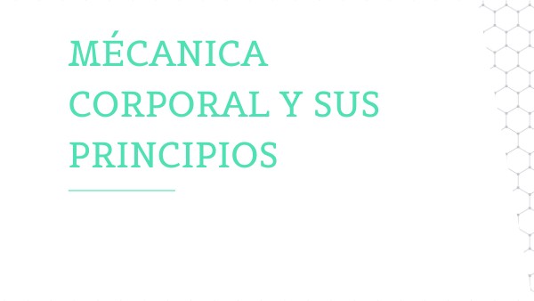 La mecánica estudia el equilibrio y movimientos de los cuerpos, aplicado a los seres humanos se denomina mecánica corporal y esta es la disciplina que abarca el funcionamiento correcto y armónico del aparato músculo esquelético en coordinación con el sistena nervioso.