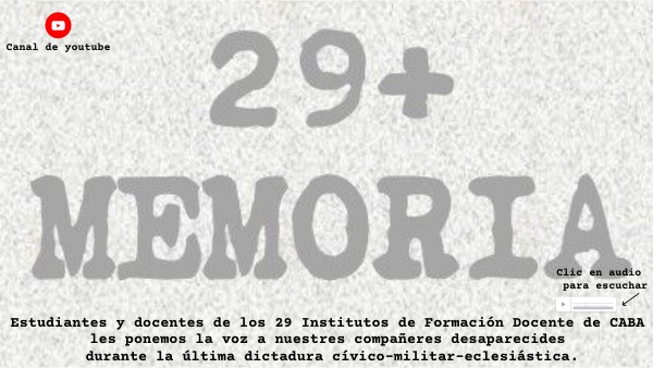 Estudiantes y docentes de los 29 Institutos de Formación Docente de CABA les ponemos la voz a nuestres compañeres desaparecides durante la última dictadura cívico-militar-eclesiástica.