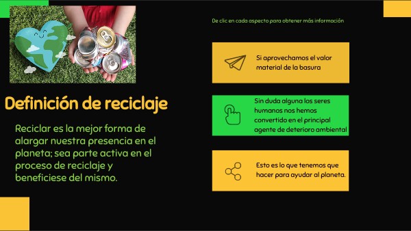 Reciclar es la mejor forma de alargar nuestra presencia en el planeta; sea parte activa en el proceso de reciclaje y beneficiese del mismo.