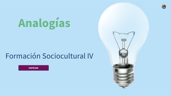 Analogías de sinonimia. La analogía se presenta entre dos palabras que son sinónimas. Por ejemplo: sereno – calmo. Analogías por complementariedad. La analogía necesita y complementa a una de las palabras. Por ejemplo: hambre – comer. Analogías cogenéricas. Las analogías se dan porque el concepto pertenece a una misma clase o categoría. Por ejemplo: lagarto – iguana.