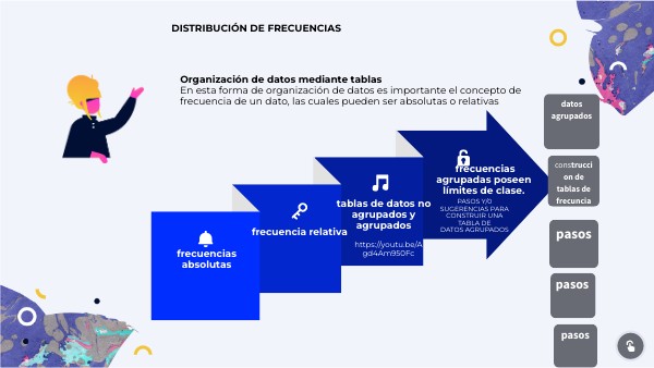 Organización de datos mediante tablasEn esta forma de organización de datos es importante el concepto de frecuencia de un dato, las cuales pueden ser absolutas o relativas