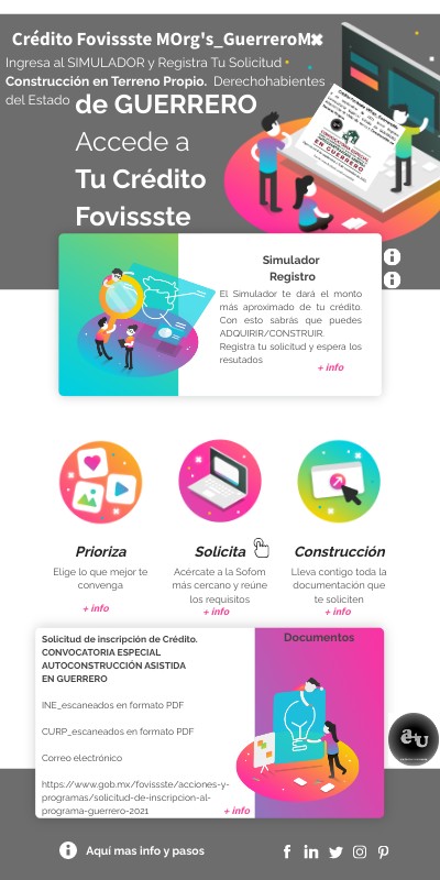 Solicitud de inscripción de Crédito.CONVOCATORIA ESPECIAL AUTOCONSTRUCCIÓN ASISTIDA EN GUERRERO INE_escaneados en formato PDF CURP_escaneados en formato PDF Correo electrónico https://www.gob.mx/fovissste/acciones-y-programas/solicitud-de-inscripcion-al-programa-guerrero-2021