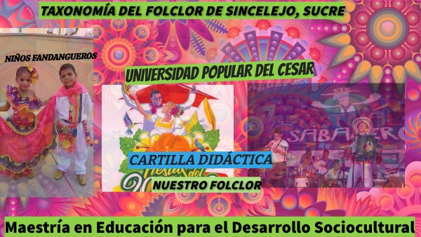 Esta cartilla didáctica TAXONOMÍA DEL FOLCLOR DE SINCELEJO SUCRE, nos transporta a un viaje mágico por el mundo de la historia del folclor del municipio de Sincelejo, cargado de mucho sentimiento y despertando en cada lector sentido de pertenencia por su cultura. Además, permite reconocer algunos personajes importantes que han enriquecido con su trabajo y experiencia la identidad sincelejana.
