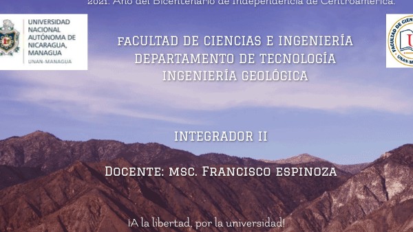 Las rocas son un agregado de uno o más minerales con propiedades químicas definidas que se agrupan de forma natural, forman la mayor parte de la tierra y su importancia en el área geo científica, radica en que contienen el registro del ambiente geológico del tiempo en el que se formaron. La depresión nicaragüense originada por un hundimiento tectónico de dos sistemas de fallas que forman una estructura de graben. Fue rellenada por sedimentos aluviales y rocas volcánicas terciarias. Las rocas predominantes de esta región son las rocas ígneas (basalto-andesiticas, escorias) depósitos aluviales y lacustres. Las rocas ígneas formadas por solidificación de material rocoso caliente atraves del proceso de cristalización de magma volcanico. Las formas que adoptan los cuerpos ígneos durante su cristalización delimitan diferentes estructuras ígneas.