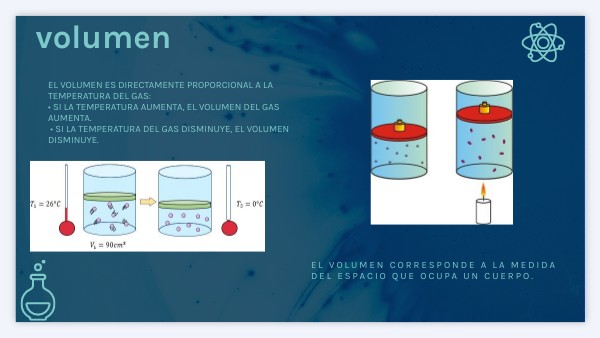 EL VOLUMEN ES DIRECTAMENTE PROPORCIONAL A LA TEMPERATURA DEL GAS: • Si la temperatura aumenta, el volumen del gas aumenta. • Si la temperatura del gas disminuye, el volumen disminuye.