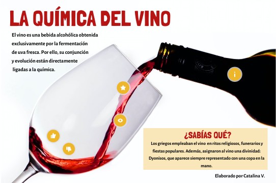 El vino es una bebida alcohólica obtenida exclusivamente por la fermentación de uva fresca. Por ello, su conjunción y evolución están directamente ligadas a la química.
