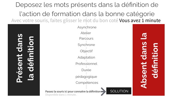 Deposez les mots présents dans la définition de l'action de formation dans la bonne catégorie
