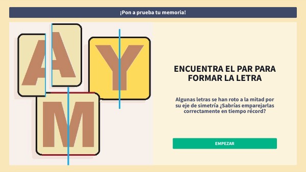 Algunas letras se han roto a la mitad por su eje de simetría ¿Sabrías emparejarlas correctamente en tiempo récord?