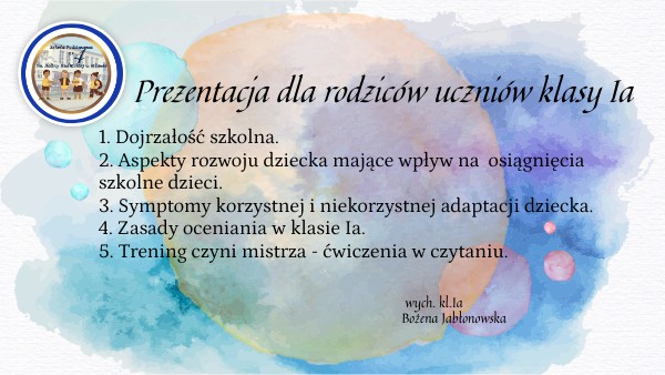Prezentacja dla rodziców uczniów klasy Ia