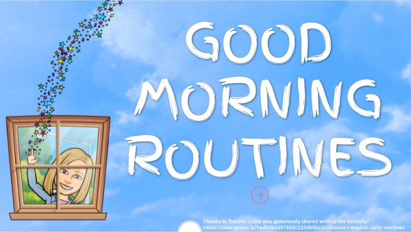 Thanks to Teacher Crina who generously shared with us her Genially! https://view.genial.ly/5ed0db6267693c1203b0b33c/dossier-i-english-daily-routines