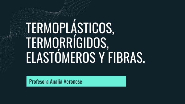 Termoplásticos, termorrígidos, elastómeros y fibras.