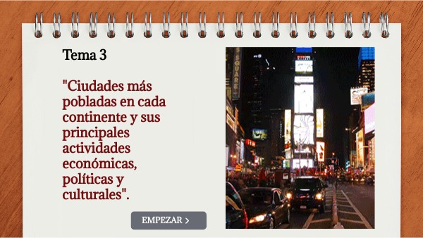Tema 3"Ciudades más pobladas en cada continente y sus principales actividades económicas, políticas y culturales".