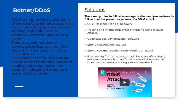 - If recovering from an attack , should be aware of setting up website slowly as a high traffic source would be sent again from users accessing causing a secondary attack.