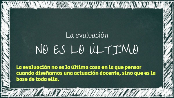 La evaluación no es la última cosa en la que pensar cuando diseñamos una actuación docente, sino que es la base de toda ella.