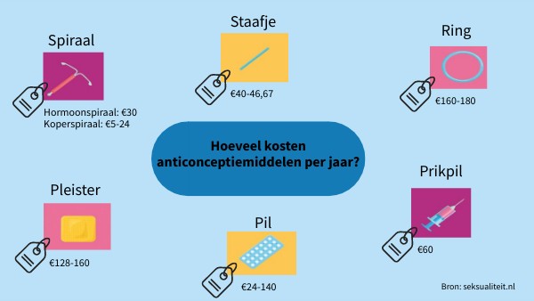 Hoeveel kosten anticonceptiemiddelen per jaar?