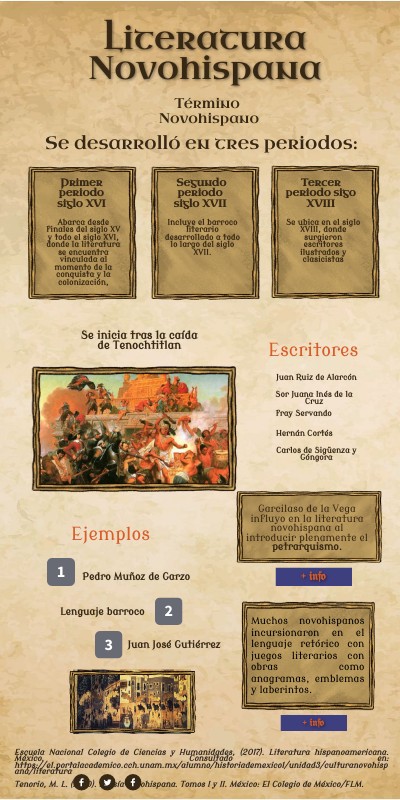 Escuela Nacional Colegio de Ciencias y Humanidades, (2017). Literatura hispanoamericana. México. Consultado en: https://e1.portalacademico.cch.unam.mx/alumno/historiademexico1/unidad3/culturanovohispana/literatura Tenorio, M. L. (2010). Poesía novohispana. Tomos I y II. México: El Colegio de México/FLM.