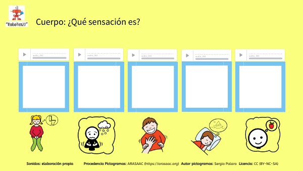 Sonidos: elaboración propia Procedencia Pictogramas: ARASAAC (https://arasaac.org) Autor pictogramas: Sergio Palaro Licencia: CC (BY-NC-SA)