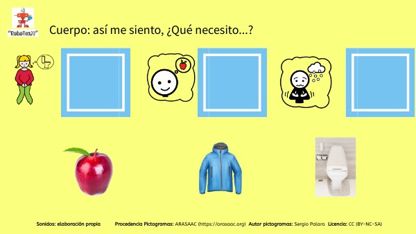 Sonidos: elaboración propia Procedencia Pictogramas: ARASAAC (https://arasaac.org) Autor pictogramas: Sergio Palaro Licencia: CC (BY-NC-SA)