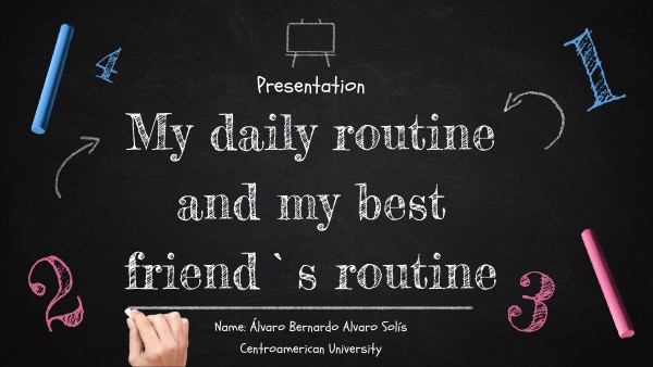 I always do my assigned homework and I also review physics classes and other calculus classes, sometimes I go out to play with my friends on the soccer field between 4 and 5 in the afternoon and after playing I come home around 6 pm.