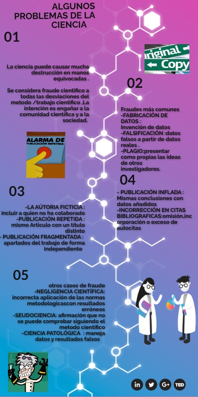 La ciencia puede causar mucha destrucción en manos equivocadas . Se considera fraude cientifico a todas las desviaciones del metodo /trabajo cientifico ,La intención es engañar a la comunidad científica y a la sociedad.