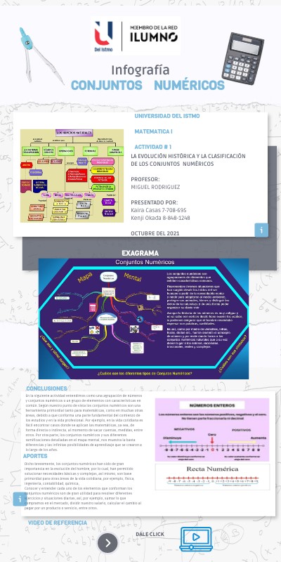 En la siguiente actividad entendimos como una agrupación de números y conjuntos numéricos o un grupo de elementos con características en común. Según nuestro punto de vista los conjuntos numéricos son una herramienta primordial tanto para matemáticas, como en muchas otras áreas, debido a que conforma una parte fundamental del comienzo de los estudios y en la vida profesional. Por ejemplo, en la vida cotidiana es fácil encontrar casos donde se aplican las matemáticas, ya sea, de forma directa o indirecta, al momento de sacar cuentas, medidas, entre otros. Por otra parte, los conjuntos numéricos y sus diferentes ramificaciones detalladas en el mapa mental, nos muestra la basta diferencias y las infinitas posibilidades de aprendizaje que se crearon a lo largo de los años.