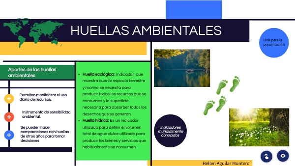 - Huella ecológica: Indicador que muestra cuanto espacio terrestre y marino se necesita para producir todos los recursos que se consumen y la superficie necesaria para absorber todos los desechos que se generan.