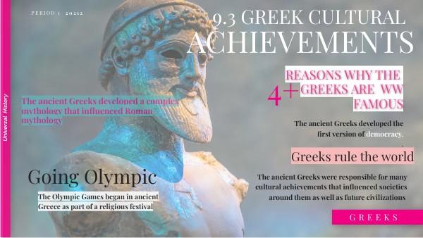 The ancient Greeks were responsible for many cultural achievements that influenced societies around them as well as future civilizations
