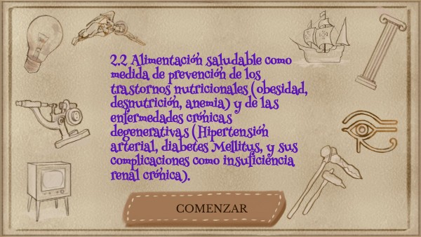 2.2 Alimentación saludable como medida de prevención de los trastornos nutricionales (obesidad, desnutrición, anemia) y de las enfermedades crónicas degenerativas (Hipertensión arterial, diabetes Mellitus, y sus complicaciones como insuficiencia renal crónica).