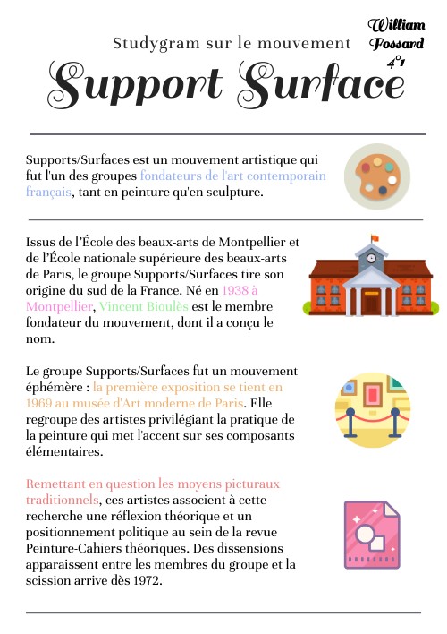 Supports/Surfaces est un mouvement artistique qui fut l'un des groupes fondateurs de l'art contemporain français, tant en peinture qu'en sculpture.