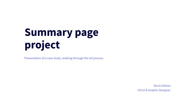 - To play around with the new summary page, please click on the CTA "SEE SUMMARY PAGE".