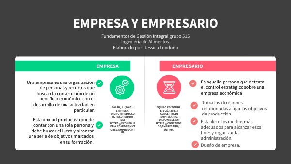 Galán, J. (2015). Empresa. Economipedia.com. Recuperado de: https://economipedia.com/definiciones/empresa.html